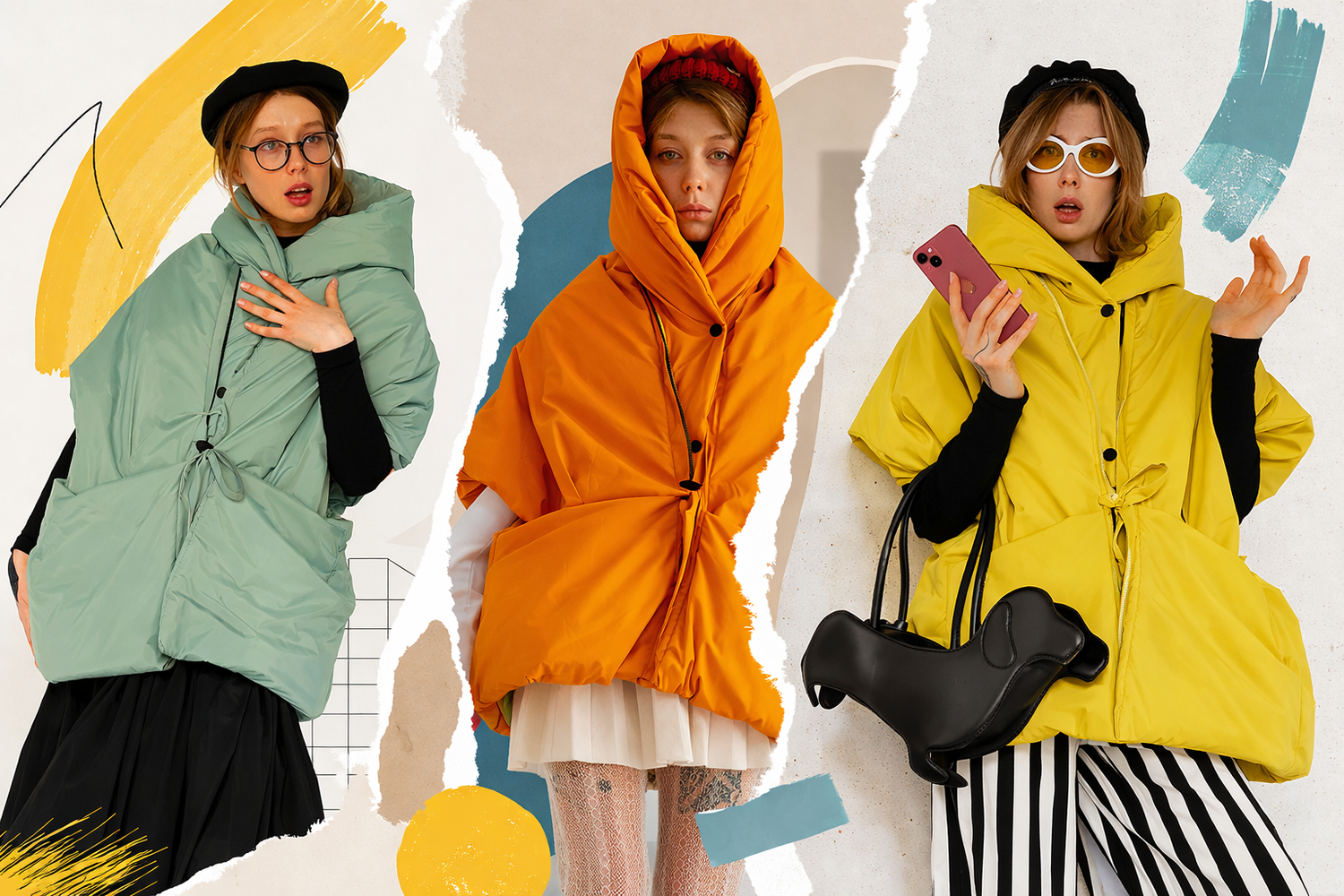 Down jacket "Little duck" in yellow butter with detachable bows and removable hood
