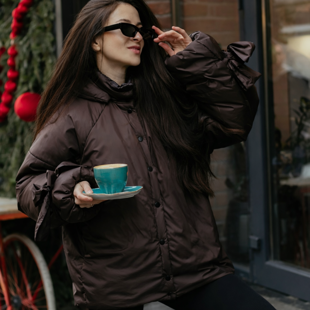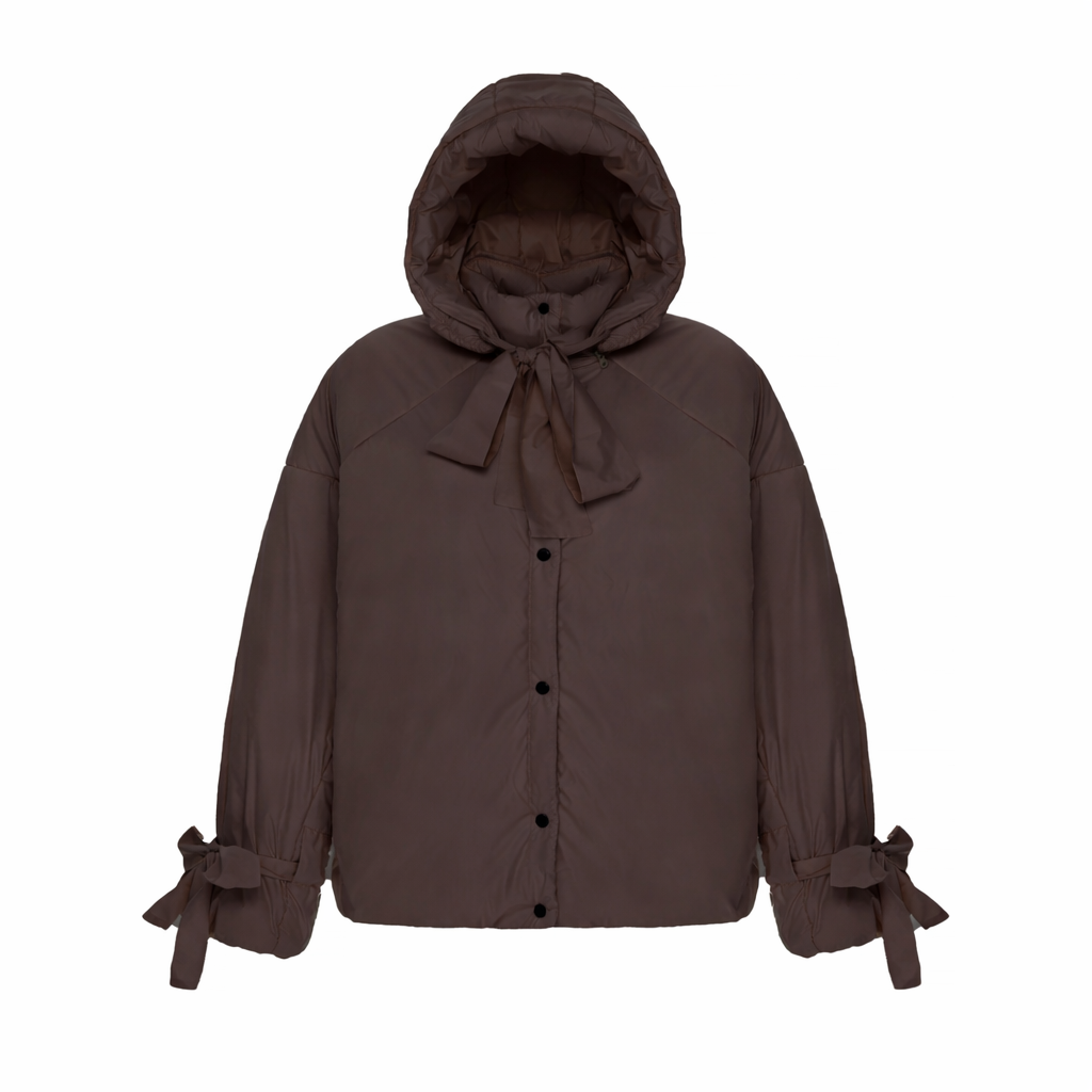 Куртка шоколадна зі знімними бантами і пристібним капюшоном