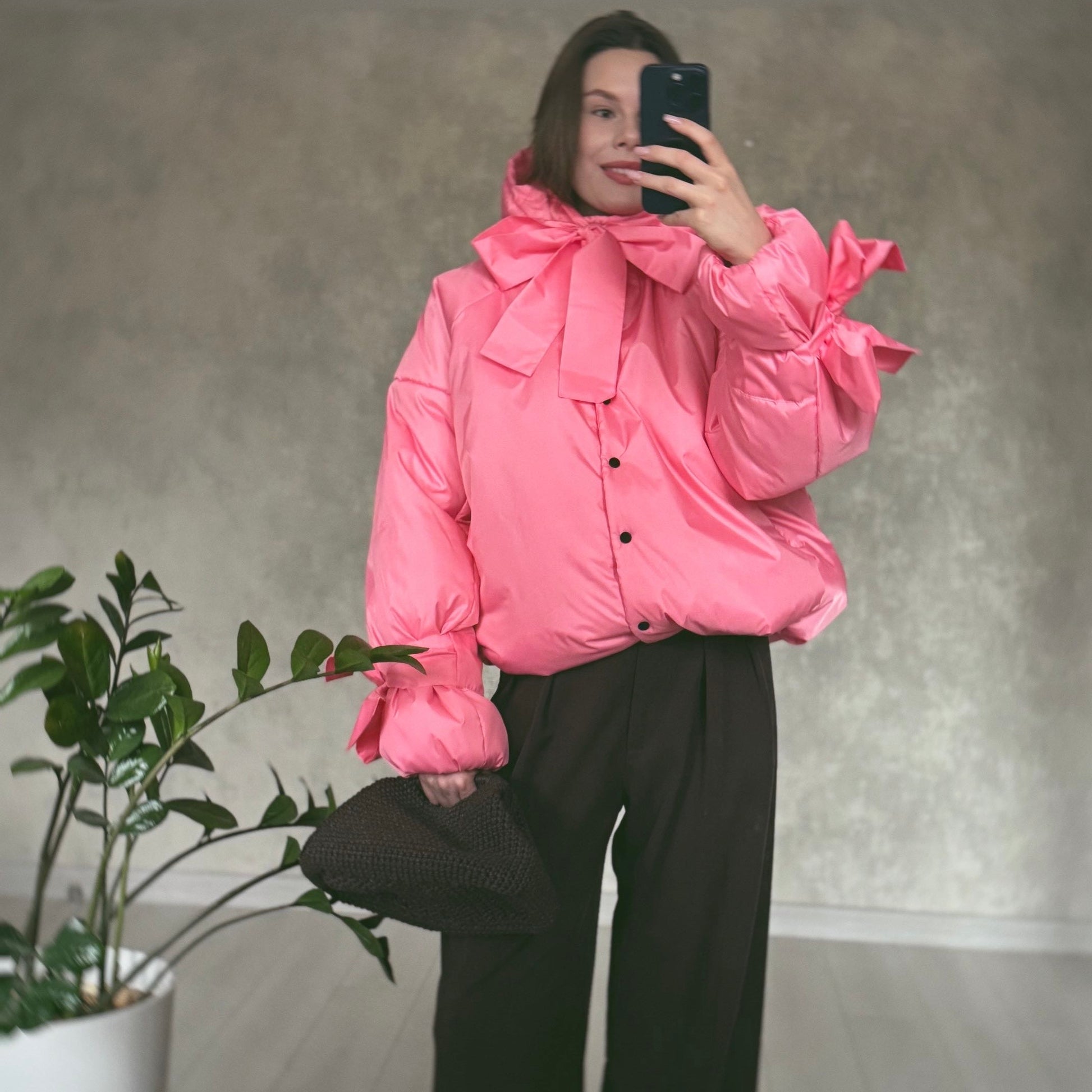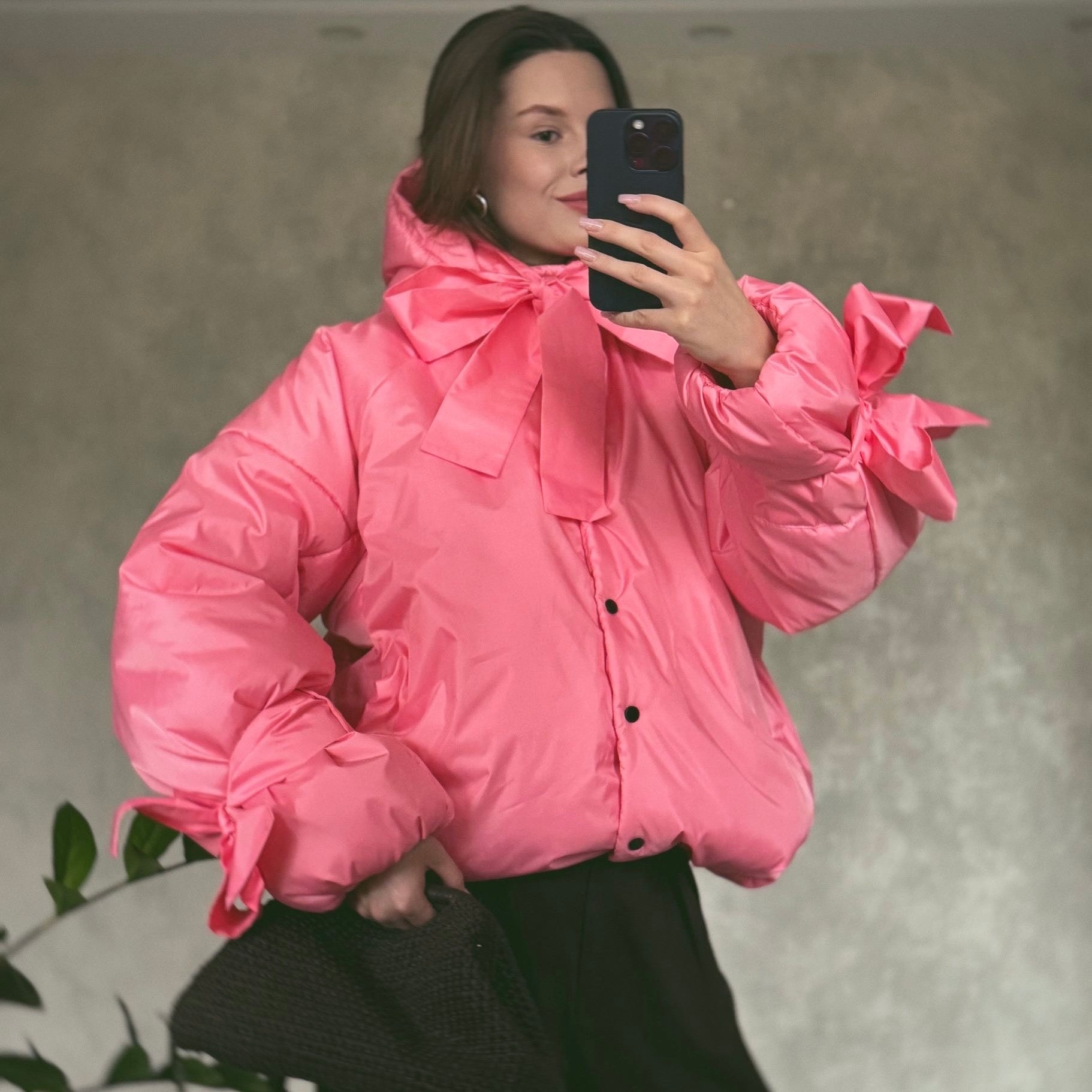 Куртка рожева зі знімними бантами і пристібним капюшоном